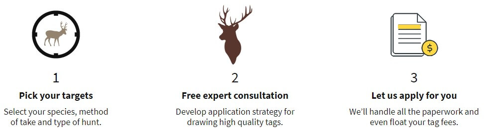 Bottom line–we help sportsmen draw the very best, limited-entry, big-game tags in the country. We offer professional consultation on where to apply and then properly fill out and submit your applications to the state. We also float the necessary tag fees on your behalf. We have the easiest, most reliable and most complete service available to assist you in drawing the tag of a lifetime.
